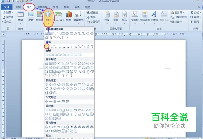 首先先插入线条,在版记页中,单击"插入"|"插图""形状"一项,弹出菜单,单击"线条",选择直线型线条.