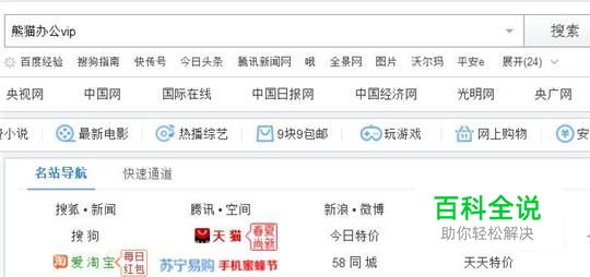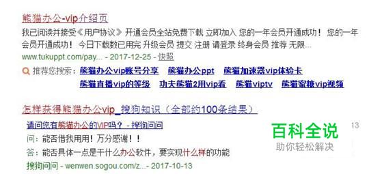 首先在搜狗浏览器中输入熊猫办公VIP并点击搜索,如下图所示。