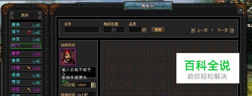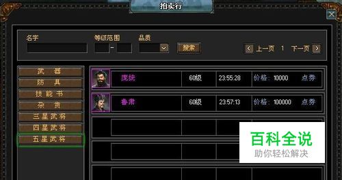 拍卖行中仅收录三星以上的猛将,分别是三星、四星、五星,玩家可以通过标签浏览到对应的武将。 拍卖行通过点券进行交易,玩家点击拍卖将自己想要出售的装备或武将放入寄售框中编辑价格后即可,在之后的二十四小时内,其他玩家可以通过拍卖行购买。交易成功后,系统会按照交易价格收取相应的交易费,玩家可以在我的出售中获取拍卖款。