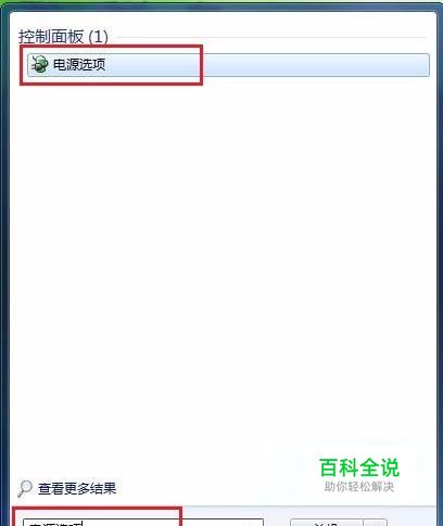 1、首先在win7键盘上按“win”键打开开始菜单,然后在开始菜单“搜索程序和文件”中输入“电源选项”,再按住回车键即可打开电源选项设置窗口,也可以在控制面板中找到电源选项;