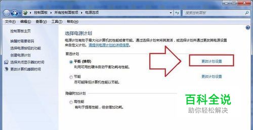 2、打开电源选项设置窗口后,选择首选计划的选项上的“更改计划设置”选项;