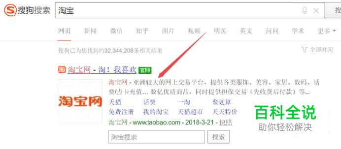 在浏览器中搜索淘宝,找到它们的官网,点击进入进行下一个操作。