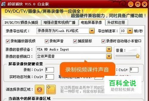同时录制教学视频的解说声音,边录视频边录声音 录制教学视频的同时,我们想将视频的解说一并录制下来的。在“录像的音频端口”和“录像的音频设备”处进行设置即可录制到视频的声音或麦克风的解说。更新下声卡的最新驱动,还能发挥声卡的更强大的录音效果哦~