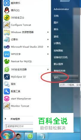 运行 点击电脑左侧的“开始”图标,选择【运行】,如下图所示: