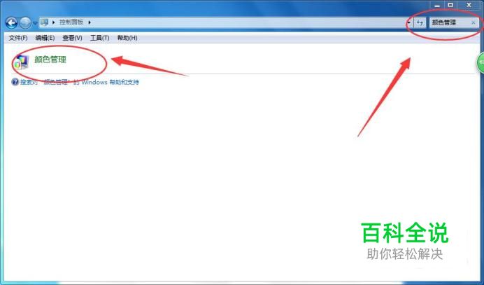 颜色管理 在弹出的控制面板窗口中,在输入框输入【颜色管理】并点击它,如下图所示: