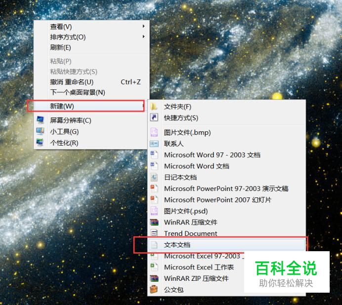 首先,在桌面上击右键,选择“新建-文本文档”菜单选项。