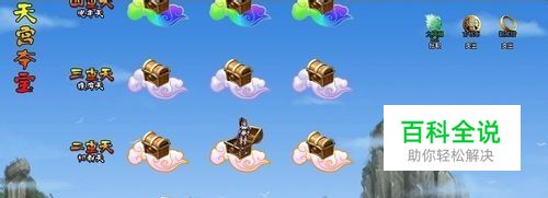 玩家完成27级主线任务,打通副本“乱坟岗7”后将开启天宫夺宝玩法,玩家点击图标就能进入天宫夺宝界面。天宫夺宝的玩法十分简单,玩家点击界面下方的左、中、右三个按钮向上飞升,每一重天都将有三个宝箱,开启宝箱可能会掉落下来,也可能停在云朵上,从第二层继续往上飞升。