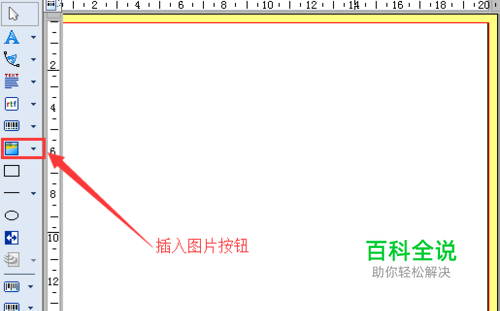 1、Nicelabel工作界面左侧的工具栏中,有个创建图片工具按钮,点击这个工具按钮,然后在标签适当位置点击鼠标左键。