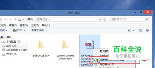 右击ISO文件选择 ' 加载为imdisk虚拟磁盘‘在弹出的对话框 点击确定即可。