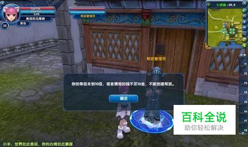 等级达到10以上,包包里攒好了10金,就可以到帮派管理员处创建帮派了。