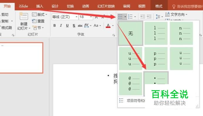 选中文字,选择开始菜单,选择项目符号