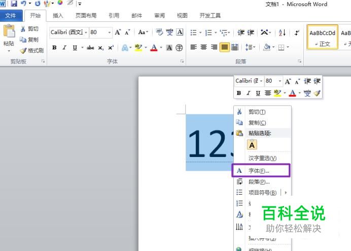 选中123,右击选择字体;