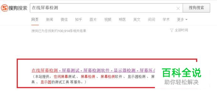 首先,使用搜索引擎搜索“在线屏幕检测”关键字,在打开的搜索结果页面中,点击进入在线屏幕检测网站。