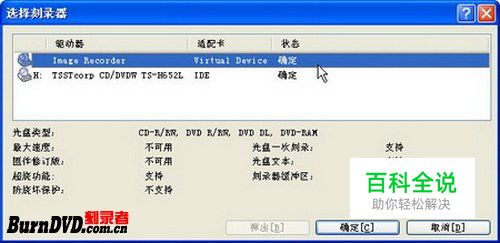 第3步,打开“选择刻录器”对话框,在刻录器列表中可以看到除了显示出物理刻录机以外,还显示出一个名为Image Recorder的驱动器。Image Recorder是Nero Burning ROM集成的虚拟刻录机,可以将整张光盘或硬盘中的数据复制成镜像文件。选中Image Recorder选项,并单击“确定”按钮,如图2009012145所示。 图2009012145 “选择刻录器”对话框