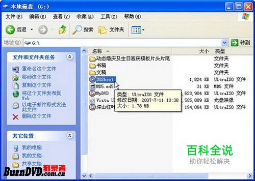 打开事先设置的保存镜像文件的文件夹,用户可以查看生成的DOS启动光盘镜像文件,如图2009012150所示。 图2009012150 生成的DOS启动光盘镜像文件