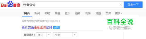 首先打开百度搜索引擎,查询“违章查询”或者“违章车辆查询”,百度就跟根据我们上网的所在地,帮我们自动列出我们所在省的违章查询系统,如果你想查询外地的违章情况,可以输入“山东违章查询”就可以出来山东省的违章查询系统了。