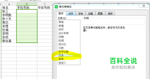 首先打开一个excel表格,然后把电话号码输入的格式设置为文本格式,操作如下所示: