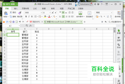 我们先做一个简单的表格,这里写了几个部门不同人员,然后我们需要对不同部门人员编号,都是从1开始。