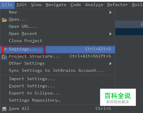 首先我们需要安装IntelliJ IDEA中的lombok插件,打开IntelliJ IDEA后点击菜单栏中的File-->Settings,或者使用快捷键Ctrl+Alt+S进入到设置页面。