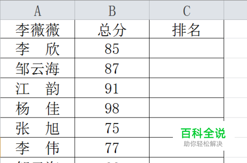 第二个参数是排名的区域,在这里就是分数那一列。因为分数区域是固定不变的所以我们用绝对引用,方法是按F4