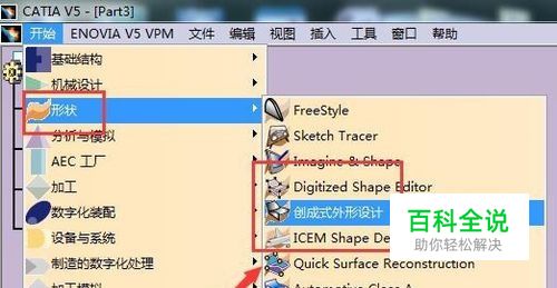 首先,打开模型或新建,均需切换到创成式,打开路径如下图,通过菜单下形状找到该曲面工具。