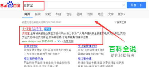 打开自己电脑上安装的某一浏览器,进入到主页后我们输入支付宝进行搜索一下,并找到支付宝官网点击打开。