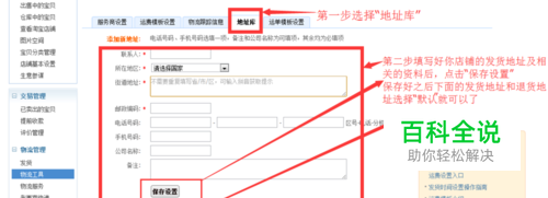 选着“地址库”,填写一些发货的地址库信息,最后”保存设置“,选择“默认"就可以了