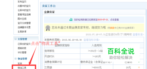 进入淘宝“卖家中心”选择左边的“物流工具”点击进入