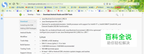往下拉,可以看到安装Android Studio的系统配置要求。按照比较以往的习惯,一般不下载Android Studio,仍然使用Eclipse + ADT这一套。