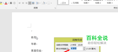 点击候会弹出对话框,然后输入4字符,点击确定。这时候就可以对齐了。重复以上的操作就可以实现。