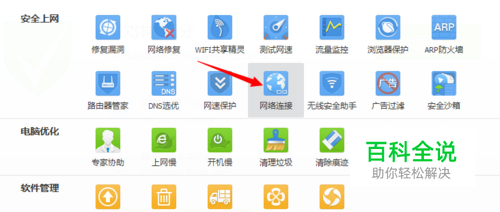 打开工具箱之后,找到网络连接选项,左击打开