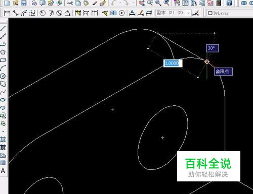 用“修剪工具”进行修剪多余的线,再用直线画出右上角的线,捕捉“象限点”,再修剪。