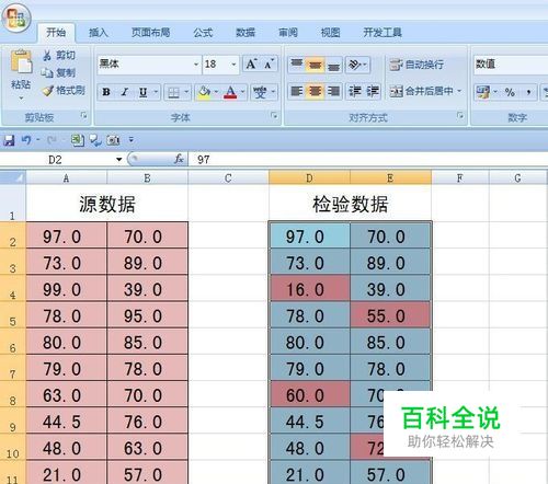 新建一张表格,在A、B两列分别输入源数据,在C、D两列分别输入检验数据,可以把AB两列复制到CD两列,然后修改一些数据,我们将在下面的操作中找到这些修改的数据。