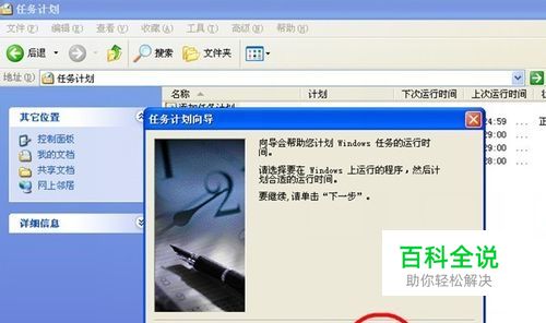 在打开的”任务计划“窗体中找到”添加任务计划“,并双击打开。这时会弹出”任务计划向导“窗体。点击”下一步“按钮。