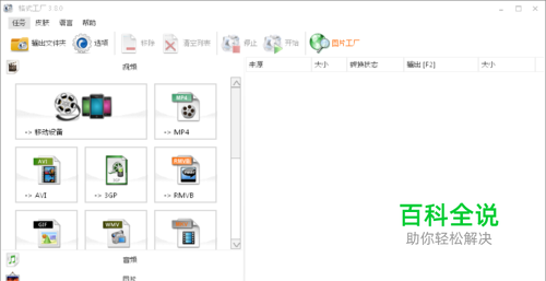 下载安装“格式工厂3.8.0.0”安装完成后打开界面,可以看到有很多种图片、视屏、音乐的转换格式。