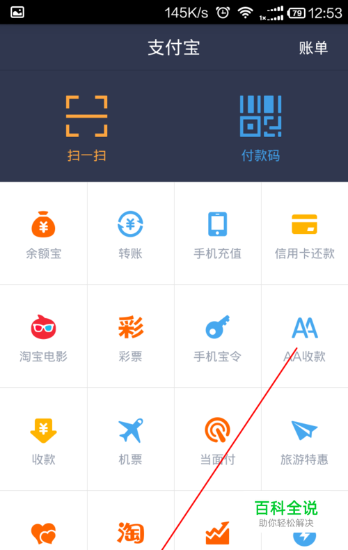 打开支付宝,输入手势密码,登录支付宝,进入支付宝的主界面。