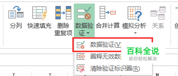 首先,在“数据”菜单下“数据工具”选项卡中选择“数据验证”,打开“数据验证”对话框,在“设置”选项卡中进行数据的有效性设置。