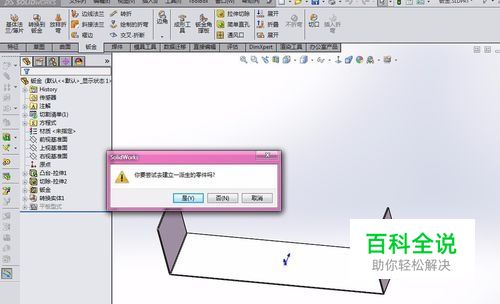 在右侧的任务栏点击【设计库】,找到【forming tools】的文件夹,里面都是一些常用的成型工具。此时拖动添加到钣金文件提示建立派生零件。