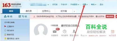 登录上自己的邮箱页面后,点击状态栏上方的“设置”