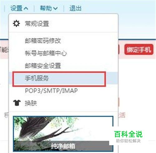 点击设置后,在弹出来的下拉窗口中,点击”手机服务“