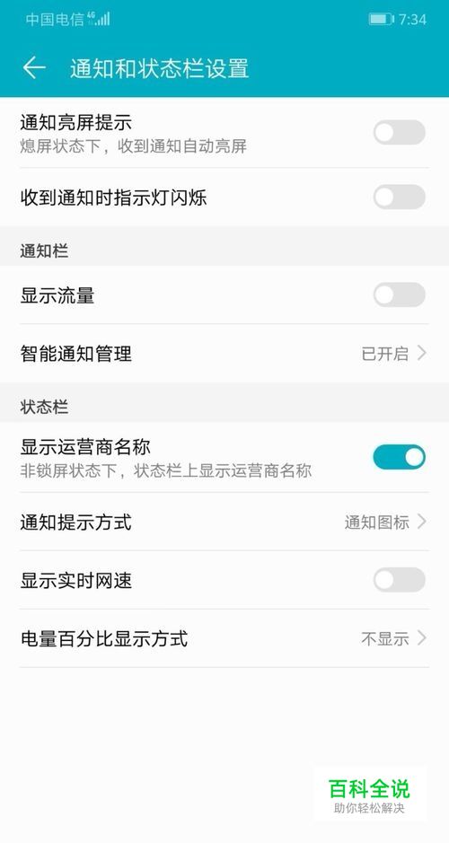 进入通知和状态栏设置界面。