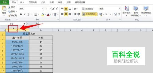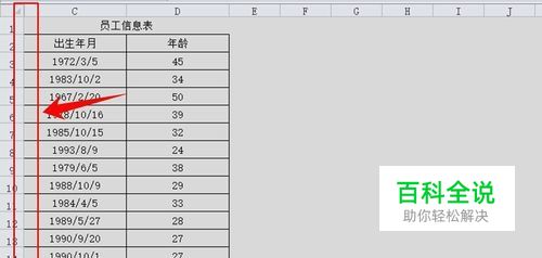 将鼠标移动至列的上方,然后按住鼠标左键不松开,同时选中显示的第一列和列序列部分(如图所示)。