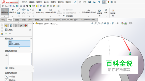 然后选择螺纹孔的位置点和之前草图的中心线,定义重合,就能打上螺纹孔了。