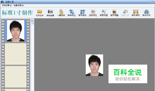 标准1寸制作:选择内置的标准一寸模板,点击‘一键完成’即可完成制作,还可根据其他参数来进行优化设置。