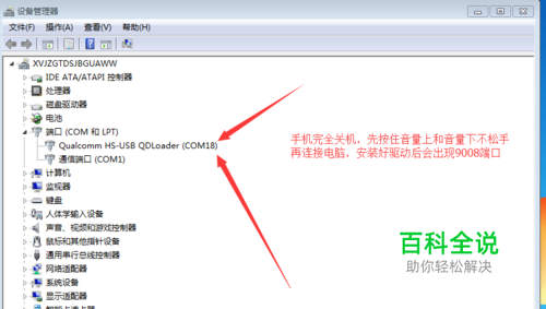 手机完全关机,先把手机的音量上和音量下按住不要松手,然后连接电脑,注意查看设备管理器,安装好驱动,如果电脑没有识别到9008端口,可以尝试更换数据线或电脑接口,直至驱动完成