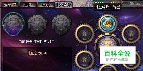 DNF时空碎片获取方法: 点击左侧的时空碎片,面板右方会出现收集时空碎片的条件,是6个对应的任务,点击右边的圆形区域会触发任务,接受并完成任务以后可以开启时空碎片,同时获得时空之力。 DNF时空碎片系统有三个阶段,分别获得不同的属性加成: 阶段一:四围属性+200 阶段二:思围属性+300 阶段三:四围属性+400