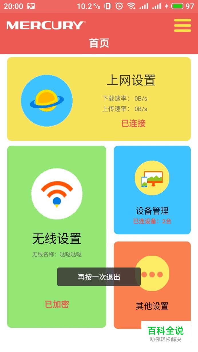 以水星路由APP为例,在应用市场中下载安装水星路由,安装完成之后点击进入,在首页即可看到相应的选项。