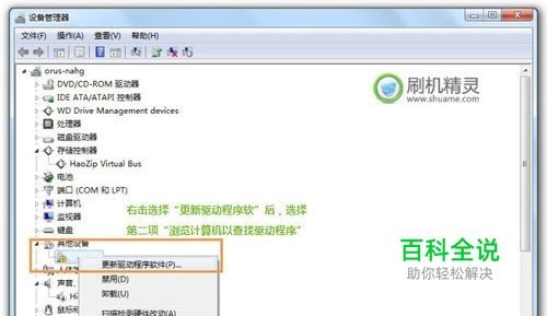 安装线刷驱动 • 手机关机状态下,按住 音量上键+电源键 ,再插入数据线 (若卡在开机画面无法开机,长按十秒左右即可强制关闭机器!) • 打开设备管理器(我的电脑-属性-硬件-设备管理器) (XP系统的设备管理器在电脑 - 属性 - 硬件栏目下) • 此时设备管理器会出现一个带问号的设备,对其右击“更新驱动程序”