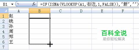 我们看一下完整的公式。 =IF(ISNA(VLOOKUP(A1,右边,1,FALSE)),"新","") 如果你的数据在 A 这一列,如果按照前面一模一样的方法定义了“左边”和“右边”两个数据块。那么你可以干脆把这个公式原封不动贴进去。 下面是是对几个重要参数的解释。