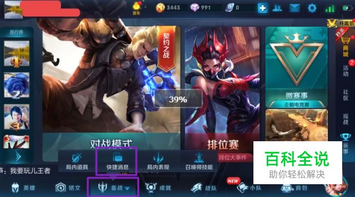 首先,我们点击打开我们手机上面的王者荣耀,然后进入游戏,之后点击备战,然后点击快捷消息;